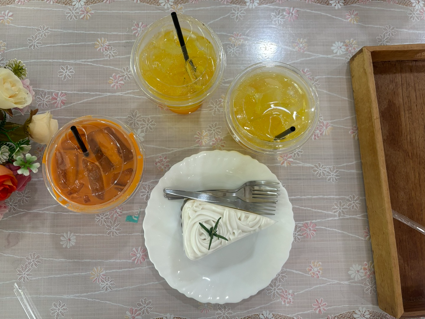 카페 드솥에 가서 타이티(55바트), 망고소다(55바트) 2개, 뭔지 모를 이름모를 케익(75바트)를 주문했다. 주문하고 영수증을 받는 동안에 음료가 다 나와서 받아서 자리로 갔다. 카페에 들어갔는데 아이가 한명도 없었다. 아이가 오면 안되는곳인가 싶기도 하고, 안된다면 얘기를 했을것 같아 별말 하지 않았다.
