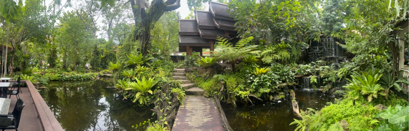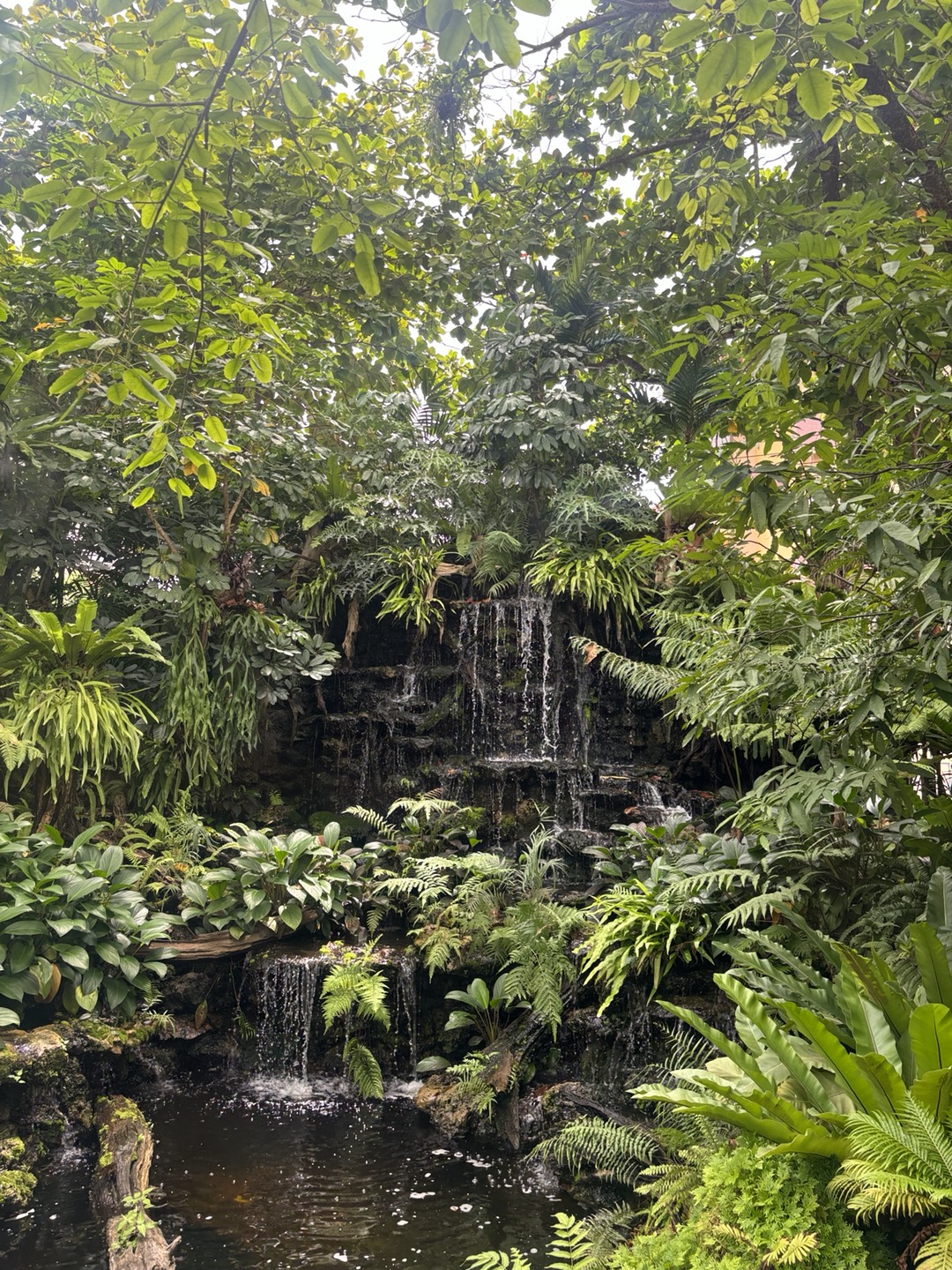 정원이 참 예쁘게 관리되어 있었다. 벌레가 엄청 많을것 같은데, 그렇지 않은 느낌. 폭포도 찰랑찰랑 예쁘고, 나무에서 스프레이같이 물도 나오고 해서 덥지 않았다면 우리도 밖에 앉아서 여유롭게 마셨을것 같다. 아이아빠와 나는 빠르게 음료를 마시고 핸드폰으로 이것저것 검색했다. 아이는 빠르게 케익을 먹고 심심해 해서 정원을 구경하자고 했다.