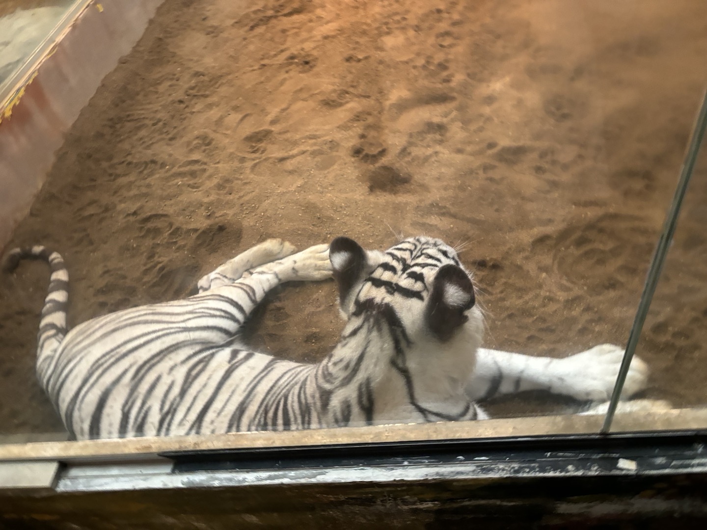 사람이 너무 많아 아이 아빠는 문앞 입구쪽에서 있었고, 유모차를 호랑이 관람석 중간에 두며 자리를 잡고 있던 아이엄마도 있었고. 그래도 꼭 쇼를 할때 봐야하는것은 아니니, 아이에게 쇼가 끝나고도 잠시는 호랑이를 볼 수 있을거라고 알려주었다. 그런데 아이는 먹이를 주는곳이 꼭 보고 싶었던 모양이었다. 그래도 호랑이를 보지 못하고 갔을 수도 있는데, 호랑이가 눈앞에서 움직이는것을 볼 수 있었음이 운이 좋았었음을 알려줬다.