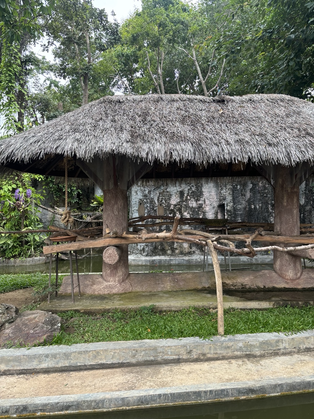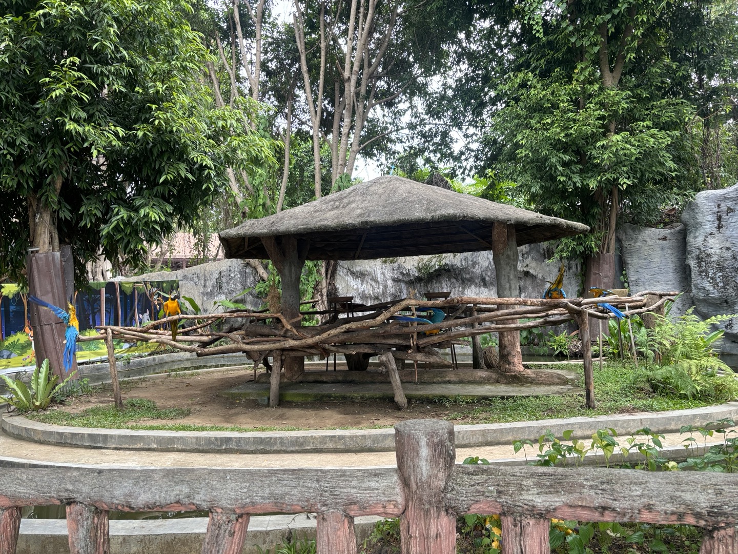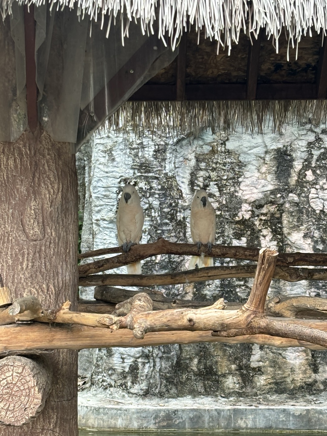 나이트 사파리이지만 우리는 밤에 구경하기에는 너무 어두울것 같고 동물도 잘 보이지 않을것 같아 조금 2시반정도에 도착하도록 출발을 했었다. 나이트 사파리 그랩/볼트 하차지는 입구 바로 근처에서 내려준다. 볼트에서 내려 매표소까지는 1분정도 걸리는 거리다. 도착해서 내리면 매표소 가는 길에 큰 앵무새들이 있다. 노란색, 파란색 앵무새가 밖에 있었다. 우리가 아닌 바깥쪽에 그냥 있다. 여러마리가..반대쪽에는 하얀색 앵무새도 있었다. 뭔가 동물을 자유롭게 키우는 느낌?