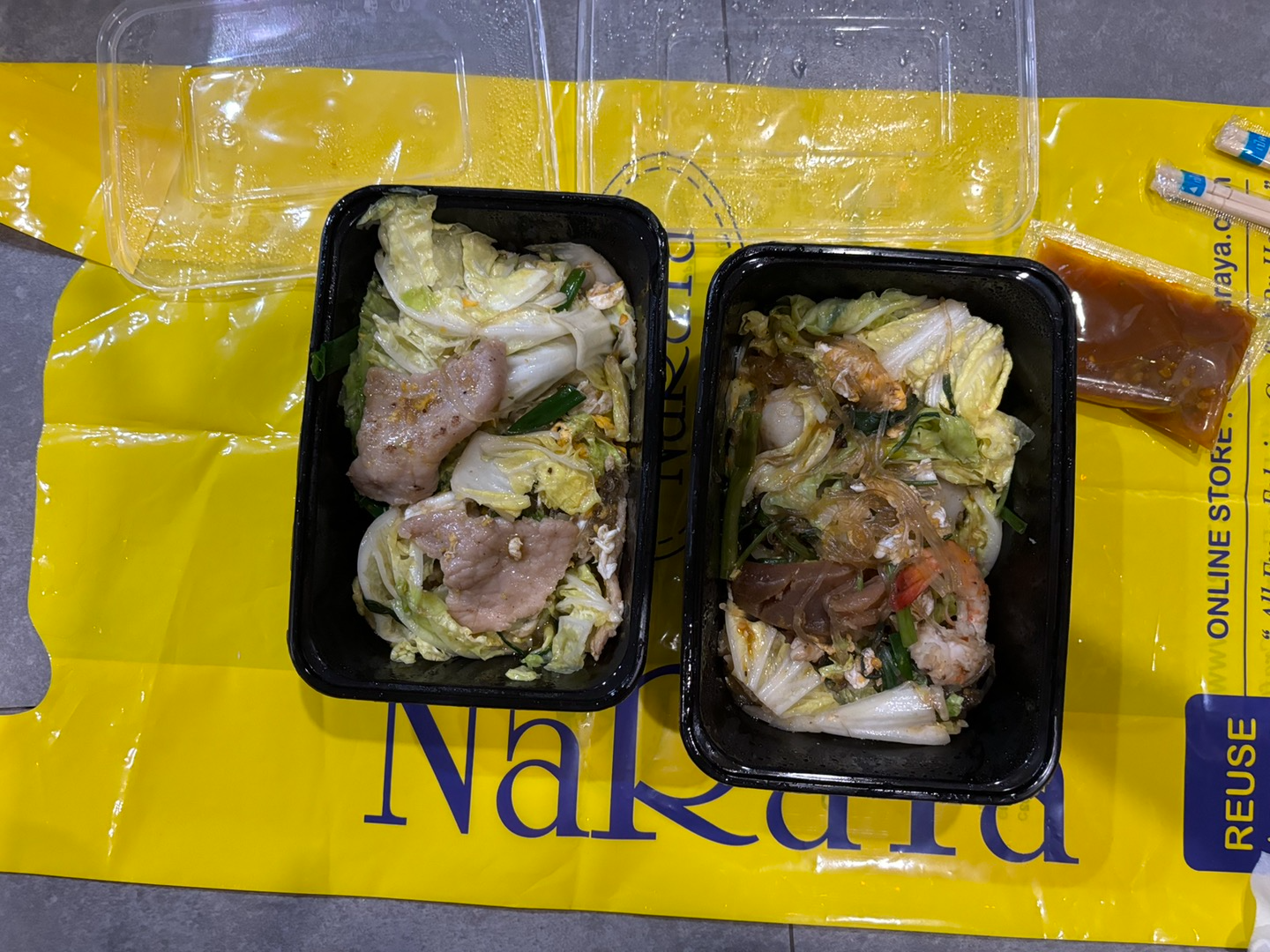 그리고 직접 가서 먹는 것보다 기본 가격이 20바트씩 비쌌다. 거기에 배달비도 따로였다. 돼지고기 수키 44바트(원래 75바트인데, 이날 무슨 할인이 붙었다.) 해산물 수키 85바트 배달비 43바트 총 172바트(약 7,500원) 이었다. 한국에서는 이가격에 떡볶이 배달도 어려운데.. 20바트씩 비싸다고 해도 한국 물가에 비하면 아무것도 아니었다. 배달이 오기까지 거의 40분정도 걸렸던것 같다.