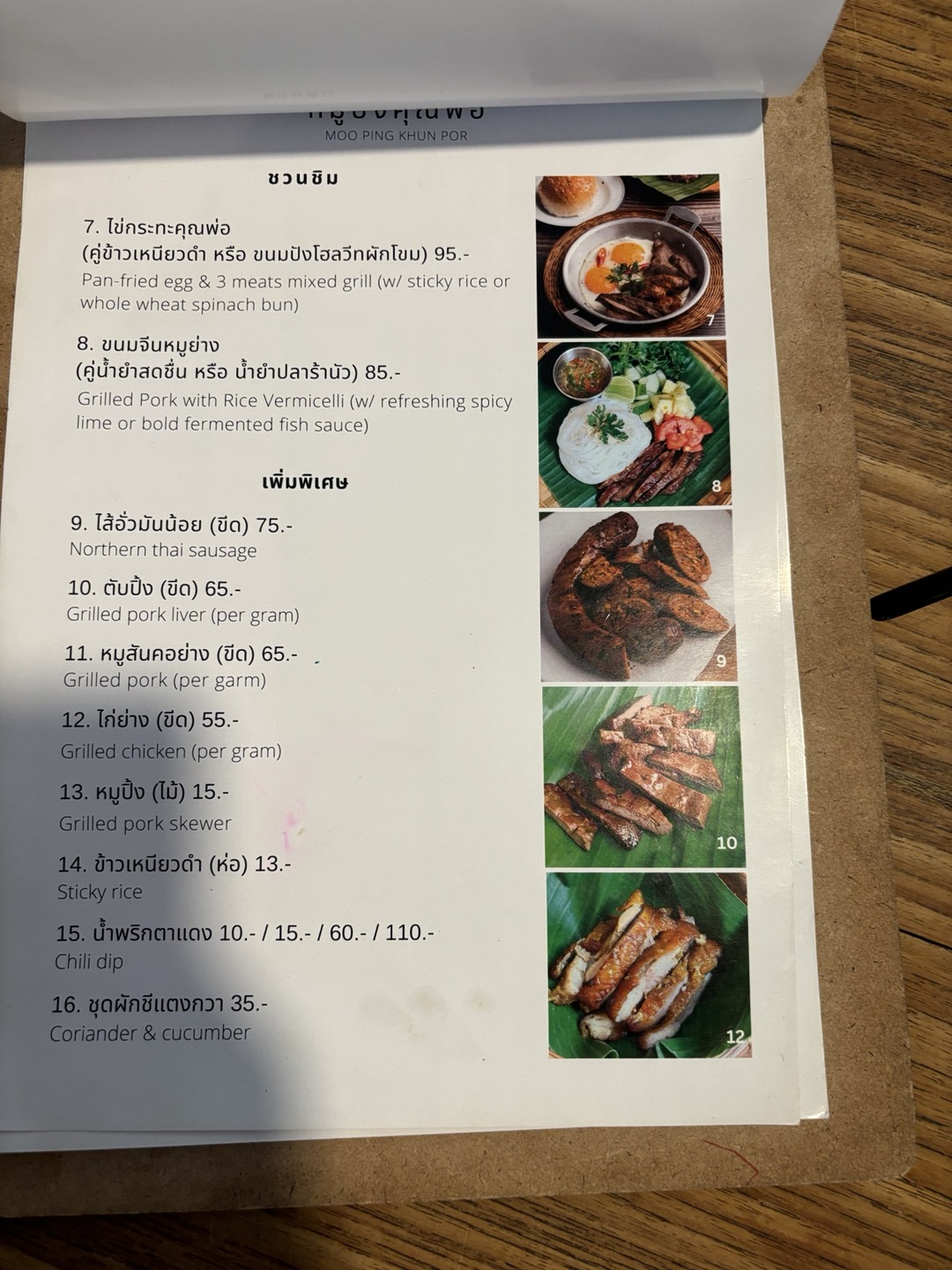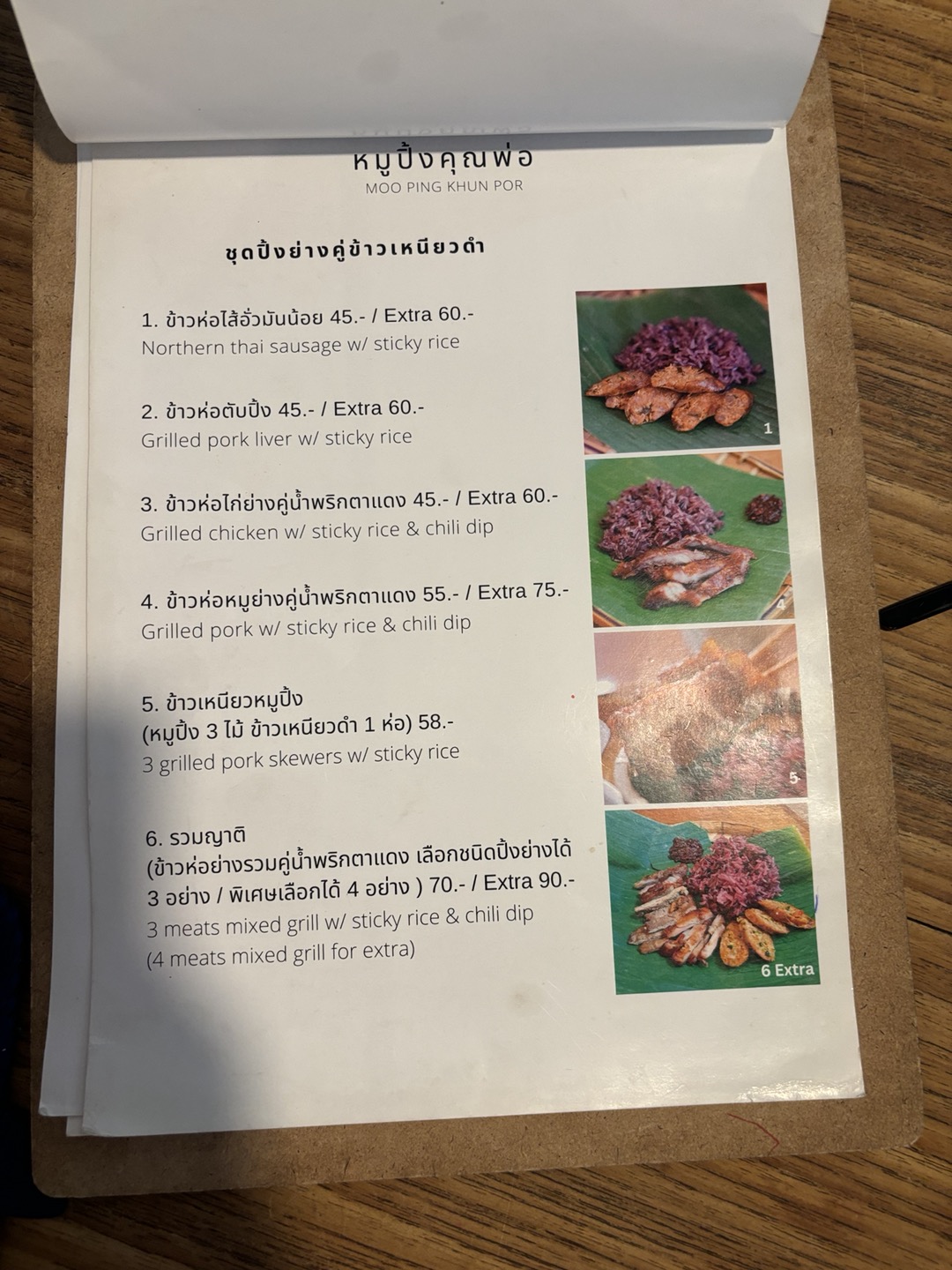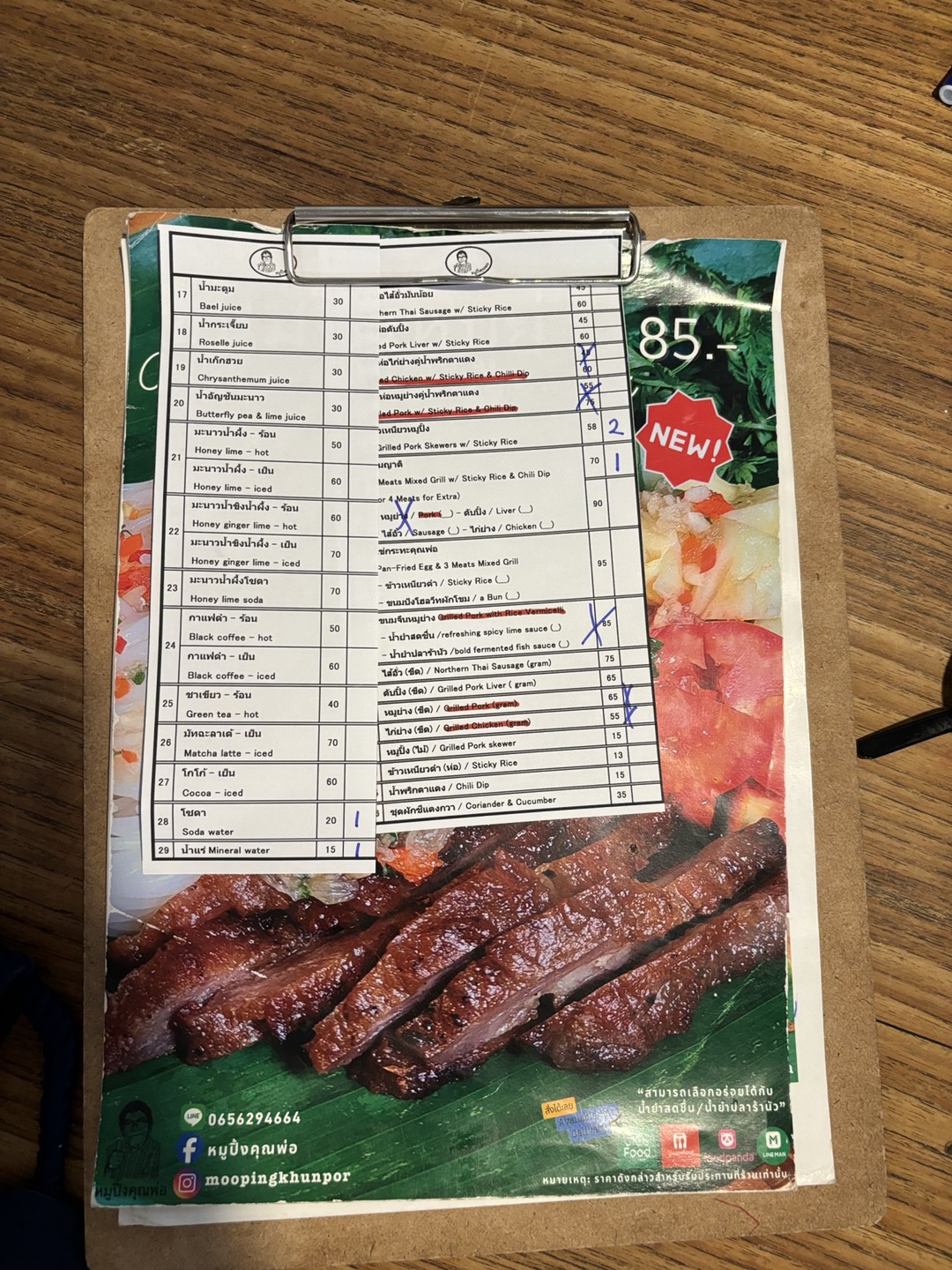 다음 호텔인 스테이컬렉션 근처에 있는 식당이다. 가게는 크지 않은 아담한 크기이고, 가게안이 너무 더웠다. 선풍기가 있어도 땀이 흐른다. 우리가 간날은 안되는 메뉴들이 있었다. 그래서 돼지고기 님만해민의 무삥쿤퍼로 점심 먹으러 갔다. 가게 안이 너무 더워 땀 흘리며 먹어야 하는곳. 우리는 5번 셋트와 6번 셋트, 그리고 소다수를 시켰다. 우리가 간날은 혼밥을 하는 사람들이 좀 있었다.