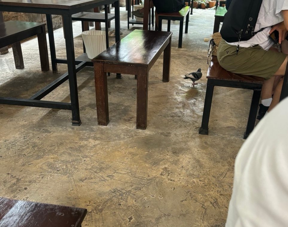 맛은 와.. 맛있다 이정도는 아니었다. 우리가 다시 재방문을 생각할 정도의 맛은 아니었다. 곱창구이는 먹을 수록 손이 가는 맛이고, 목살은 그냥그냥, 삼겹살이 그나마 나았다. 아이아빠와 나는 곱창구이가 먹을만 했고, 아이는 삼겹살이 먹을만했다고 했다. 먹고 있는 중간에 비둘기가 식당안을 걸어다닌다. 새가 사람을 겁내지 않고 들어와 있는 경우가 종종 있다. 먹을것 찾아 온건가..