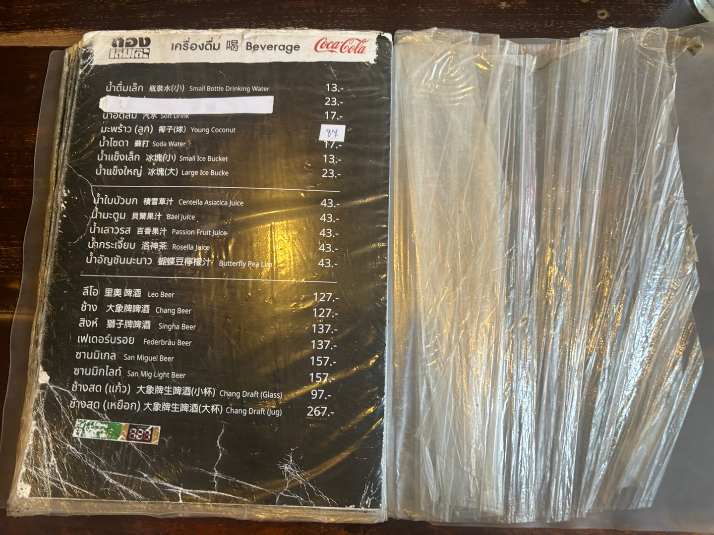 그리고 아이가 먹을만한 음료가 소다수밖에 없어 보였다. 마챠는 아이에게 먹이기에 괜히 카페인이 걱정되기도 하고. 아이아빠는 커피를 안마시니 마챠 아이스크림(140바트)을 나는 아메리카노(145바트), 아이는 소다수(80바트)를 시켰다. 총 365바트(약 16,000원)
