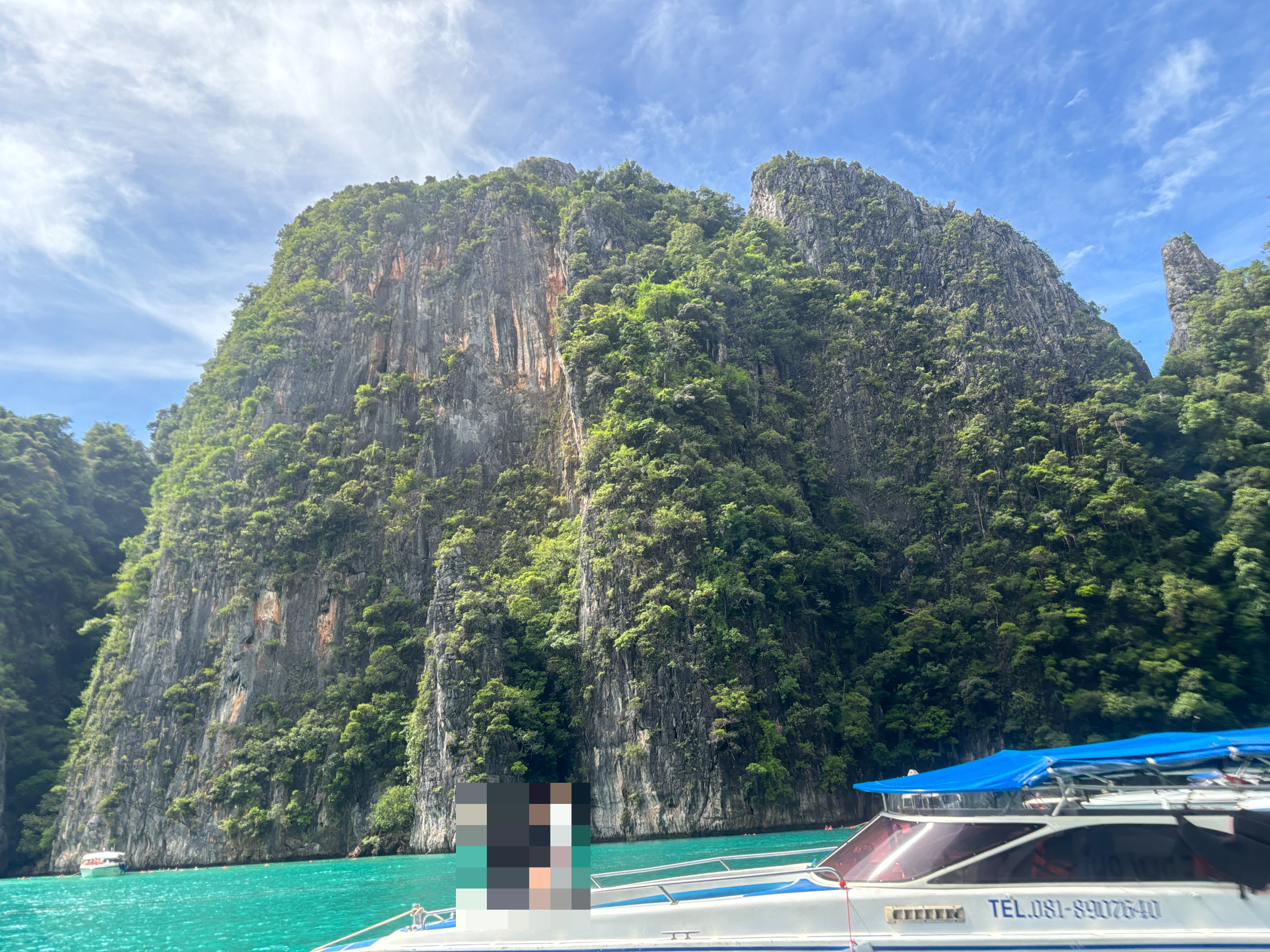 첫번째 도착지인 마야베이에 도착했지만 파도가 세서 들어가지 못햇다. 한곳을 들어가보지도 못하고 다음 코스로 넘어갔다. 마야베이까지 배를 40분정도는 탄것 같았는데, 들어가지도 못해 아쉬웠다. 물 색이 굉장히 예뻣다 들어가봤으면 좋았을텐데..ㅠ_ㅠ