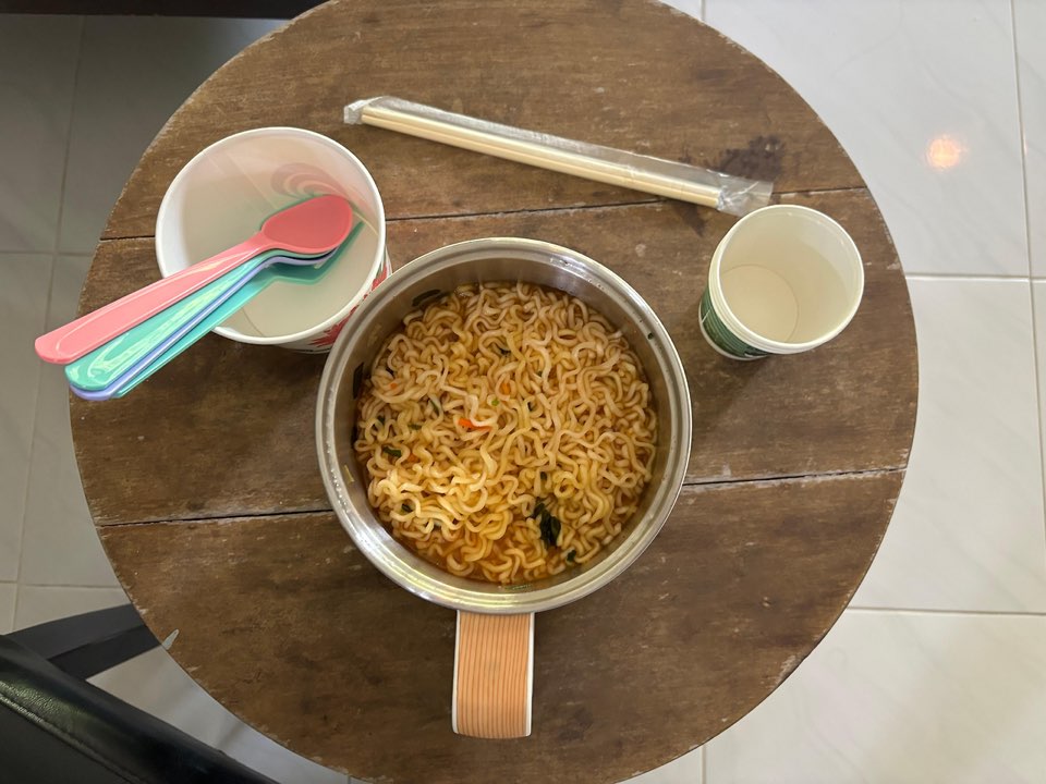 아이가 적당히 수영을 하고 점심을 먹어야 할것 같아 방으로 들어갔다. 라면을 끓여서 먹으며 넷플릭스를 봤다. 라면이 이렇게 맛있을 줄이야.. 아이도 엄지척을 하며 먹고ㅋ 포트가 작아 라면을 여러번 끓여서 먹었다. 먹으며 사왔던 빵, 우유 과자들을 함께 먹었다.