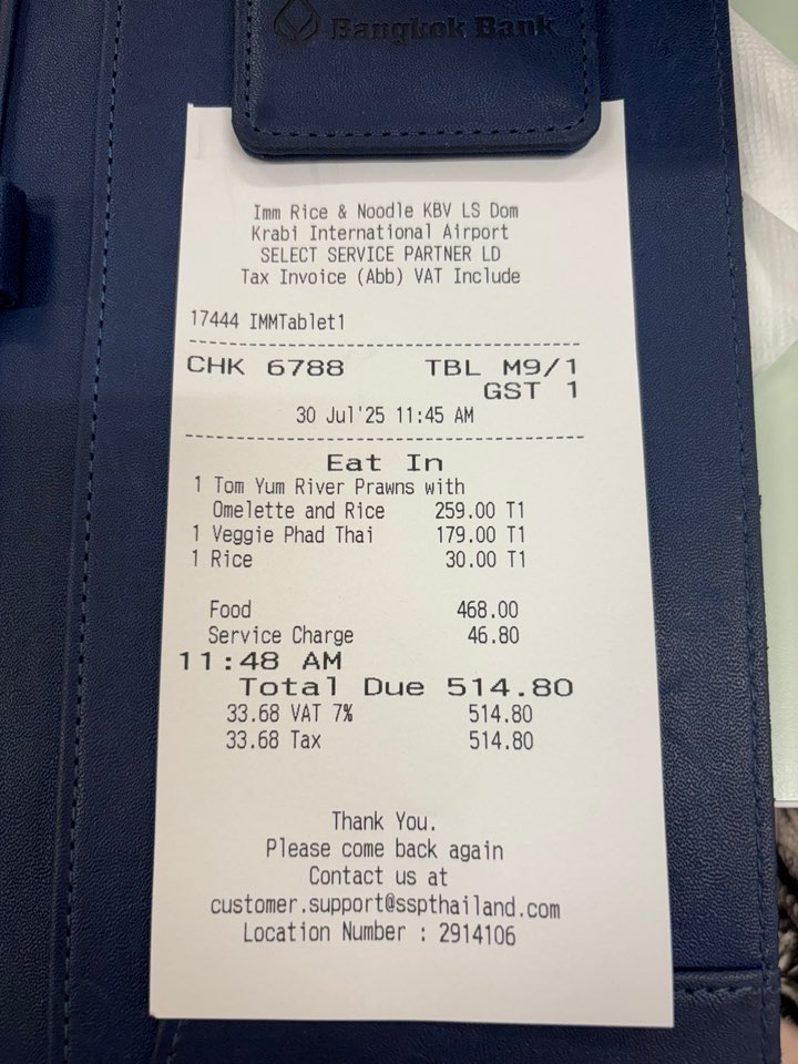 직원도 들어가서 주문하고 나서는 별로 친절하지 않았고.. 그런데 이건 끄라비의 공항 직원들이 대부분 그랬다.