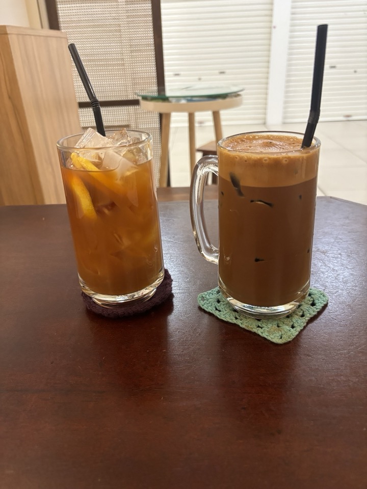 들어가니 젋은 여자 사장님이 하는 가게였는데, 아버지와 함께 하는 것 같았다. 우리는 커피, 아이스오렌지티, 아이스 쵸코, 카야토스트를 시켰다. 총25.8링깃(약 9,000원)이고 토스 알리페이로 결제했다. 가게에는 커피의 종류에 대해서 적혀 있어서 주문할때 참고하면 좋을 것 같았다.