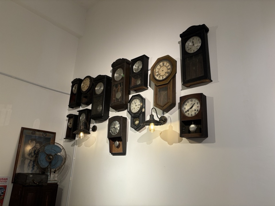 가게는 오래된 시계들이 걸려 있었다. 편하게 앉아서 차 마시기 좋은 분위기.. 가게 한쪽에 책들이 있어서 아이가 꺼내서 책을 봤다. 이곳에서 컴퓨터로 일을 하는 사람들도 있었고. 컴퓨터로 화상회의를 하는 사람도 있었다.