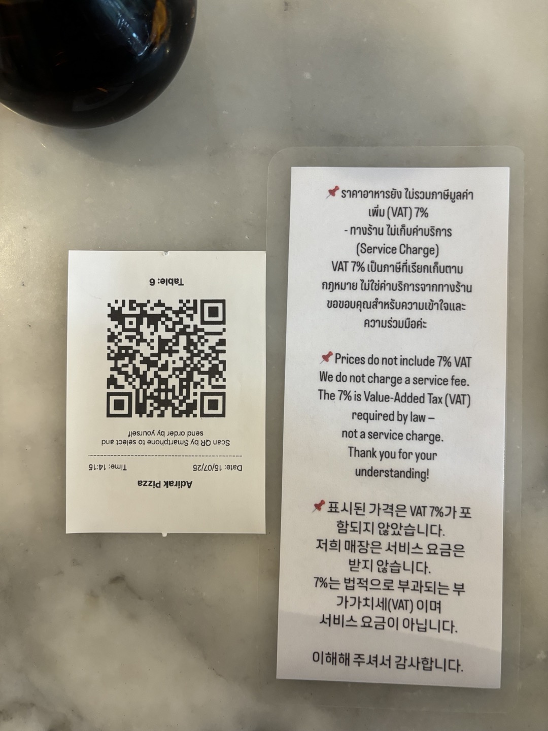 QR로 주문을 하더라도 메뉴판은 별도로 주는게 더 좋을텐데 메뉴가 많은데 메뉴판이 없어 스크롤을 하면서 보는게 편하지는 않았다. 이런 점들이 좀 아쉬웠다. (에어컨 포함)
