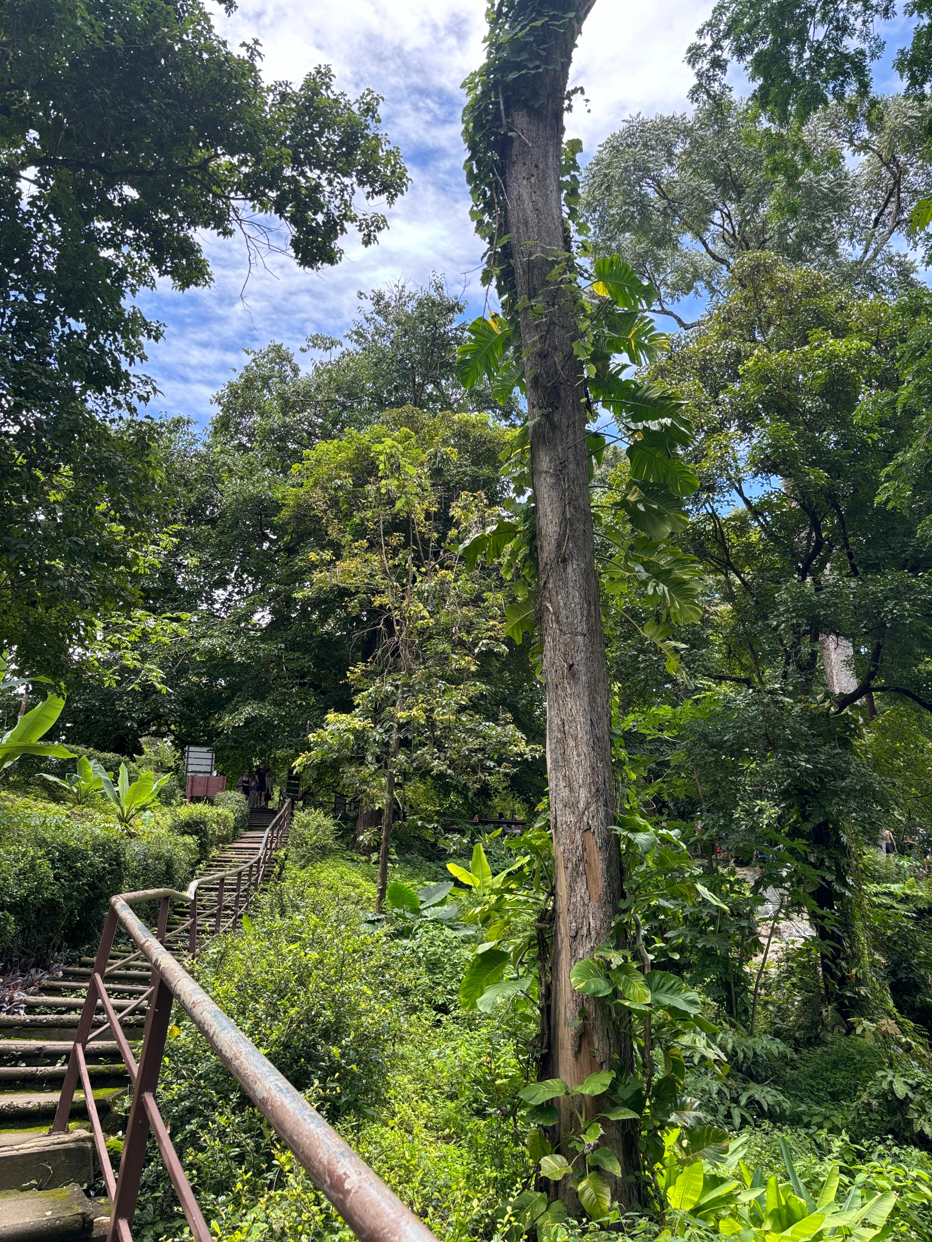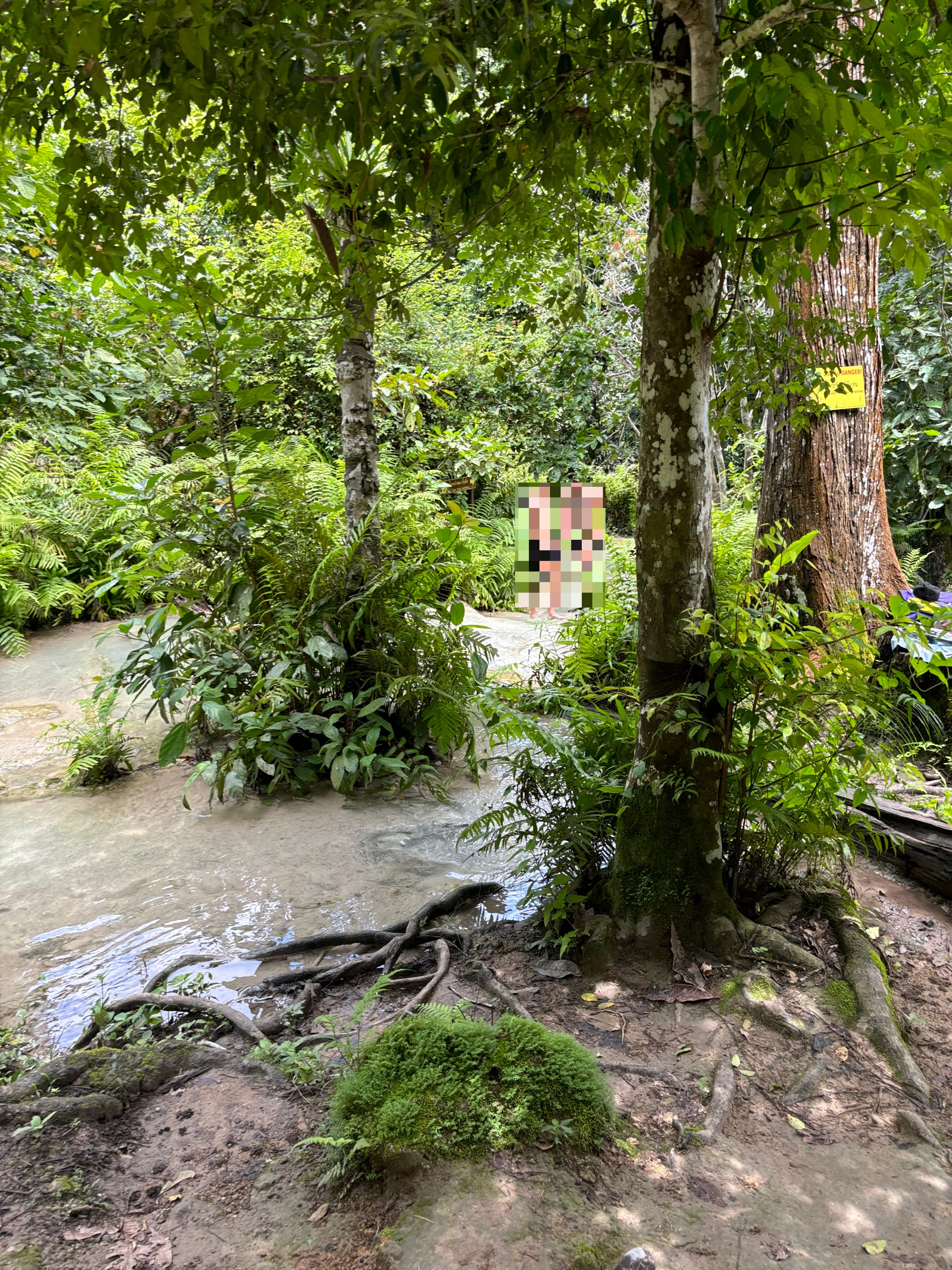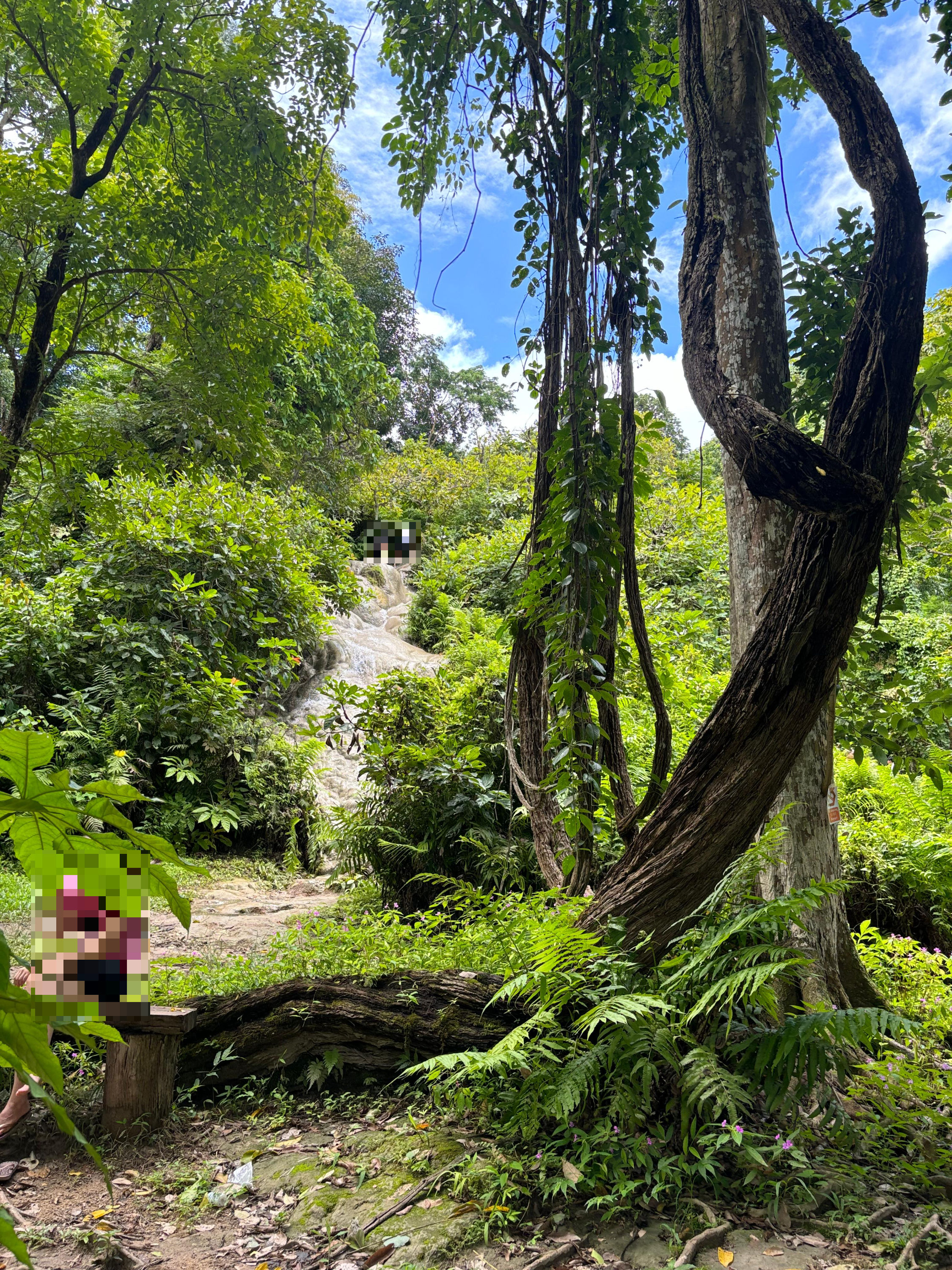 산 위에서 내려다보는 풍경이 참 예쁘다. 부아떵 폭포는 감상만을 위한 곳이 아니다. 보기도 예쁘지만, 직접 사람들이 체험할 수 있는 폭포이다. 폭포의 시작이 위에서부터 계단을 통해 내려가서 아래 계곡에서 부터 계곡을 올타고 올라오는 것이다. 아래에서부터 폭포를 타고 올라오기 때문에 위에서부터 내려갈 수 없다. 그래서 시작은 다들 계단을 타고 내려가는 것 부터이다.