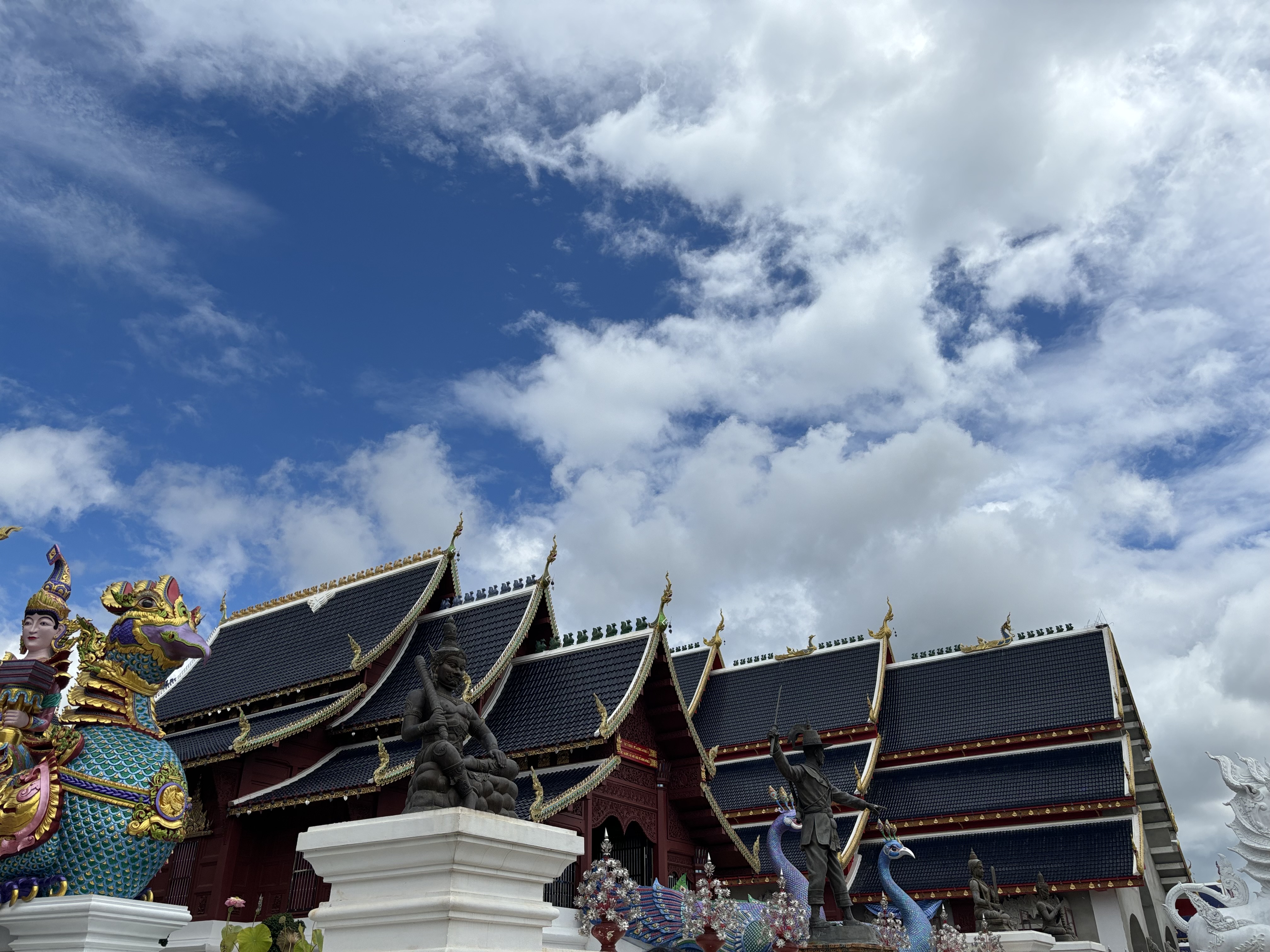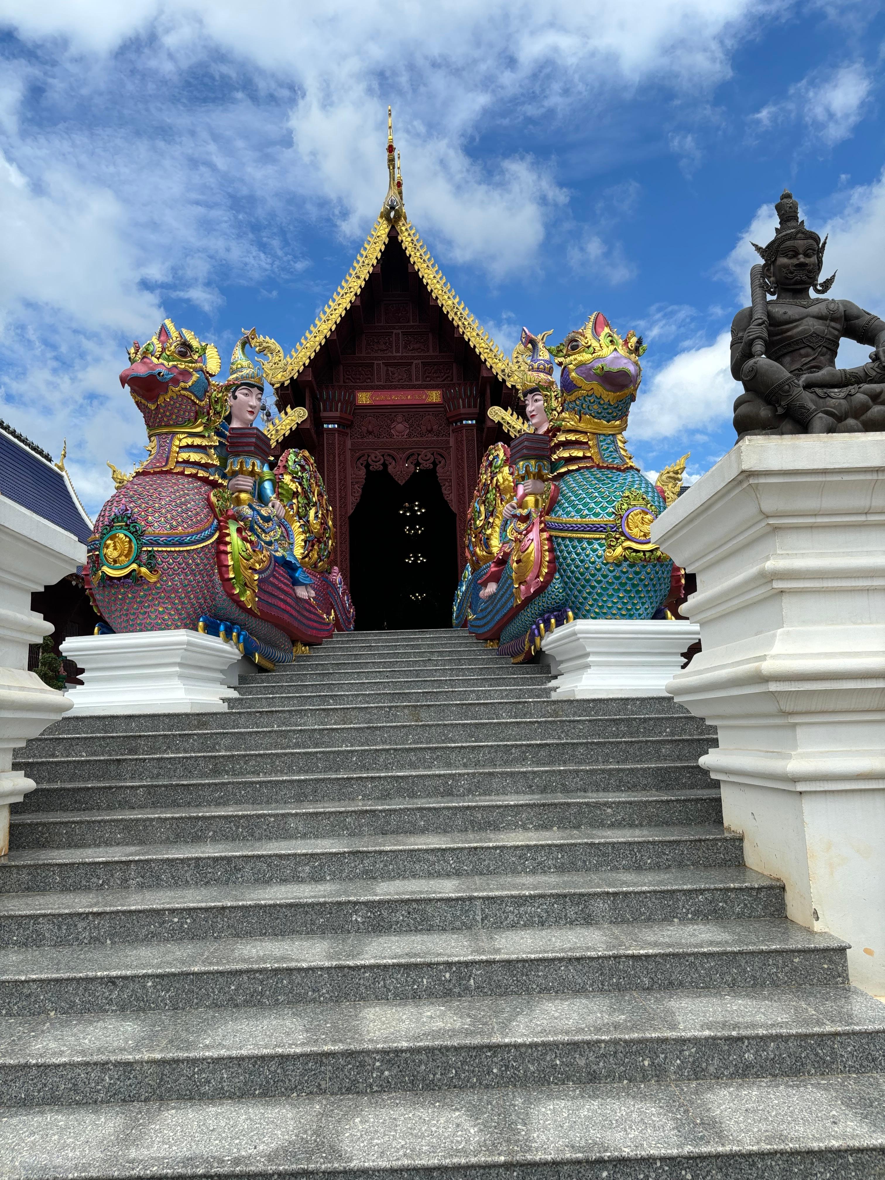 치앙라이의 블루사원이 이런 느낌과 비슷하지 않을까 싶다. 사원의 건물들의 지붕이 반짝반짝한 파란색으로 되어있다. 그래서 햇빛에 예쁘게 반짝반짝거린다. 조각상이 엄청나게 커서 사람이 우리아이가 이 조각상 앞에 서도 발톱까지밖에 오지 않는다. 엄청나게 큰 조각상들..