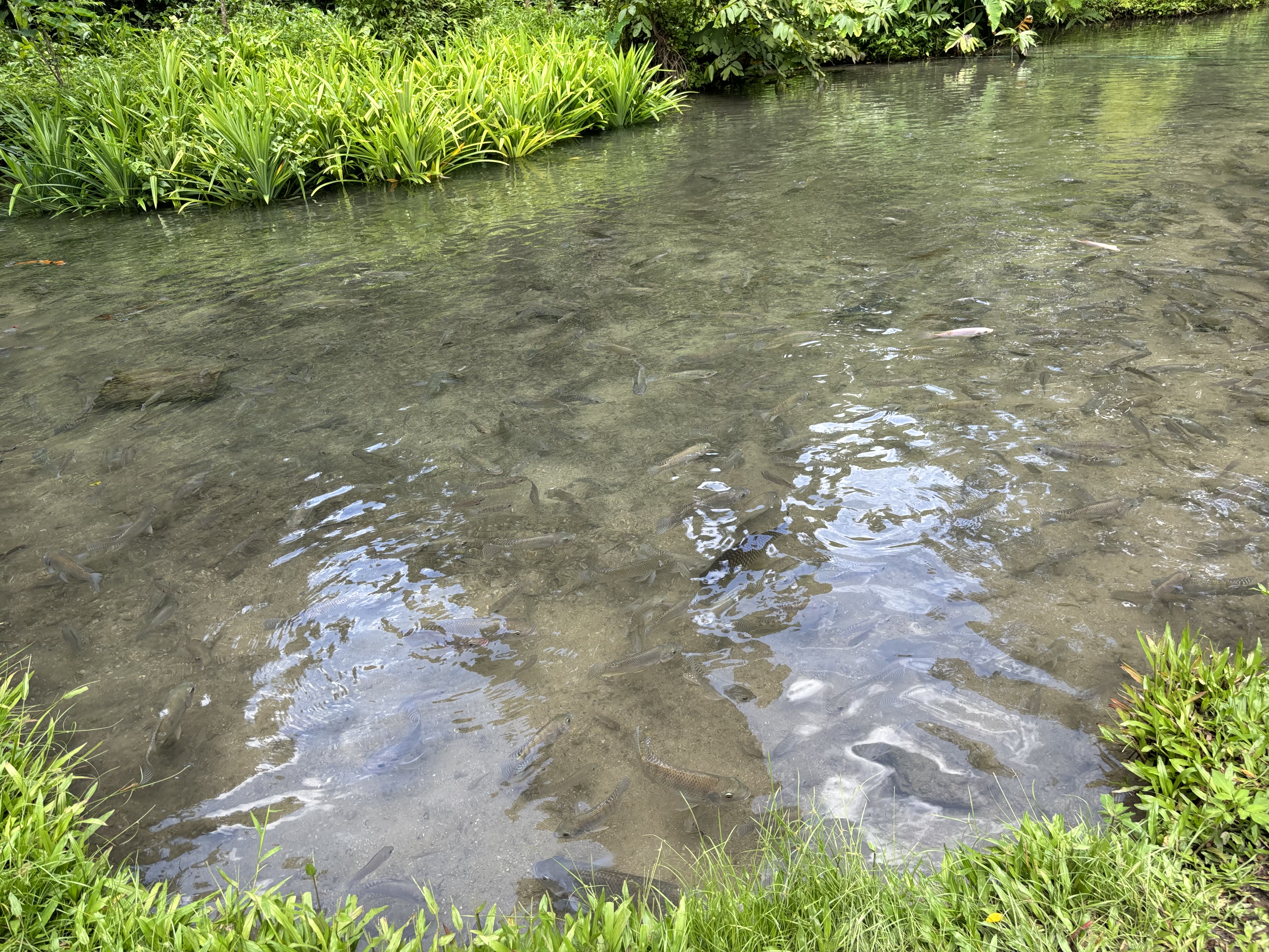 입구에 들어오면 주차하는 곳이 있다. 날을 잡고 자차로 온 사람들도 많을 것 같았다. 주차장에서 내려 걸어가다 보면 물고기 아주 많은 웅덩이 같은 것이 있다. 사진으로는 잘 안보이지만 물고기가 엄청 많았다.