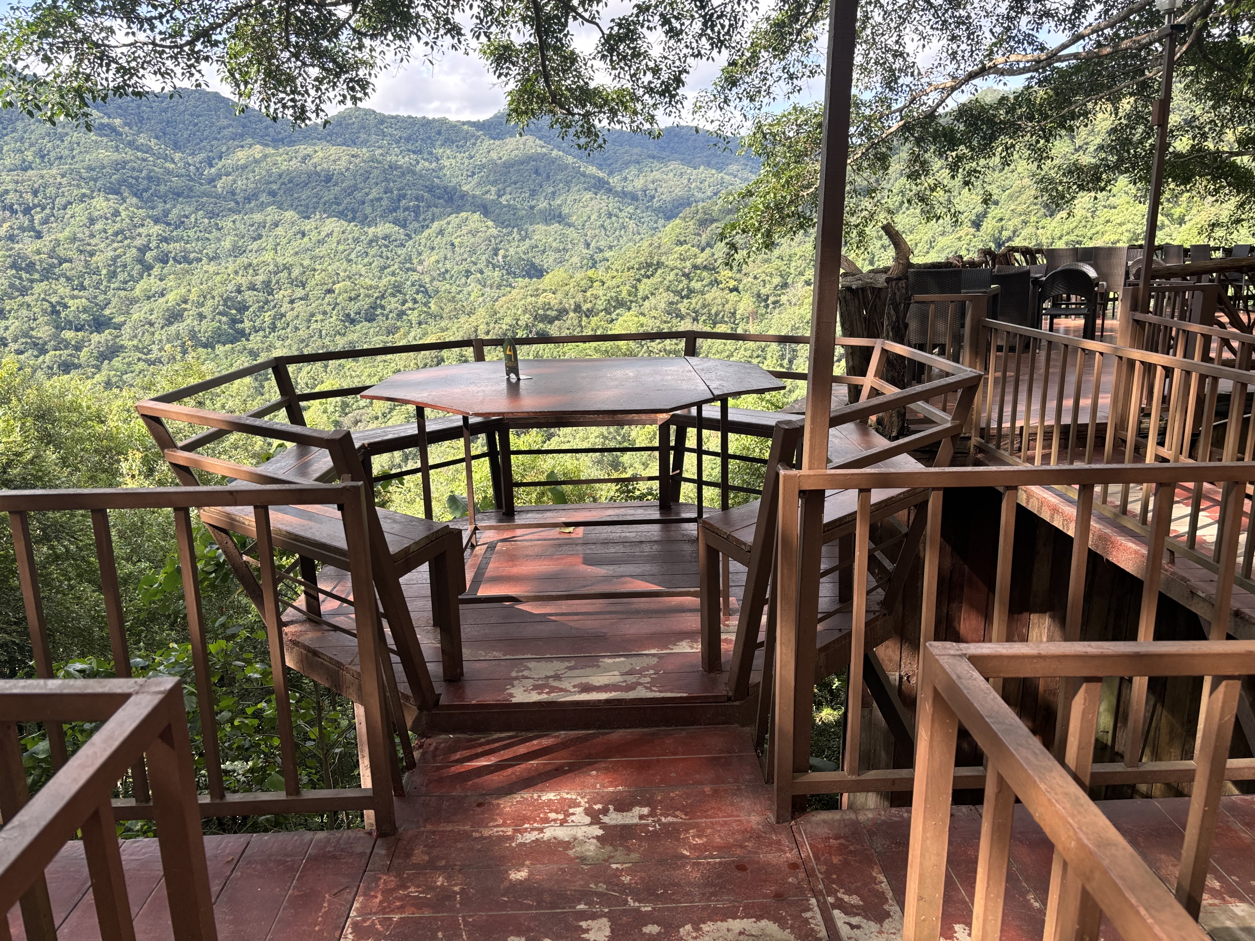 자리에 앉아 있는데 이상한 냄새가 나서 확인하니 메뉴판에서 나는 냄새였다. 빠르게 주문을 하고 구경도 하고 경치도 보고 했다. 카페 아래부분에 호텔도 운영하는 것 같았다.