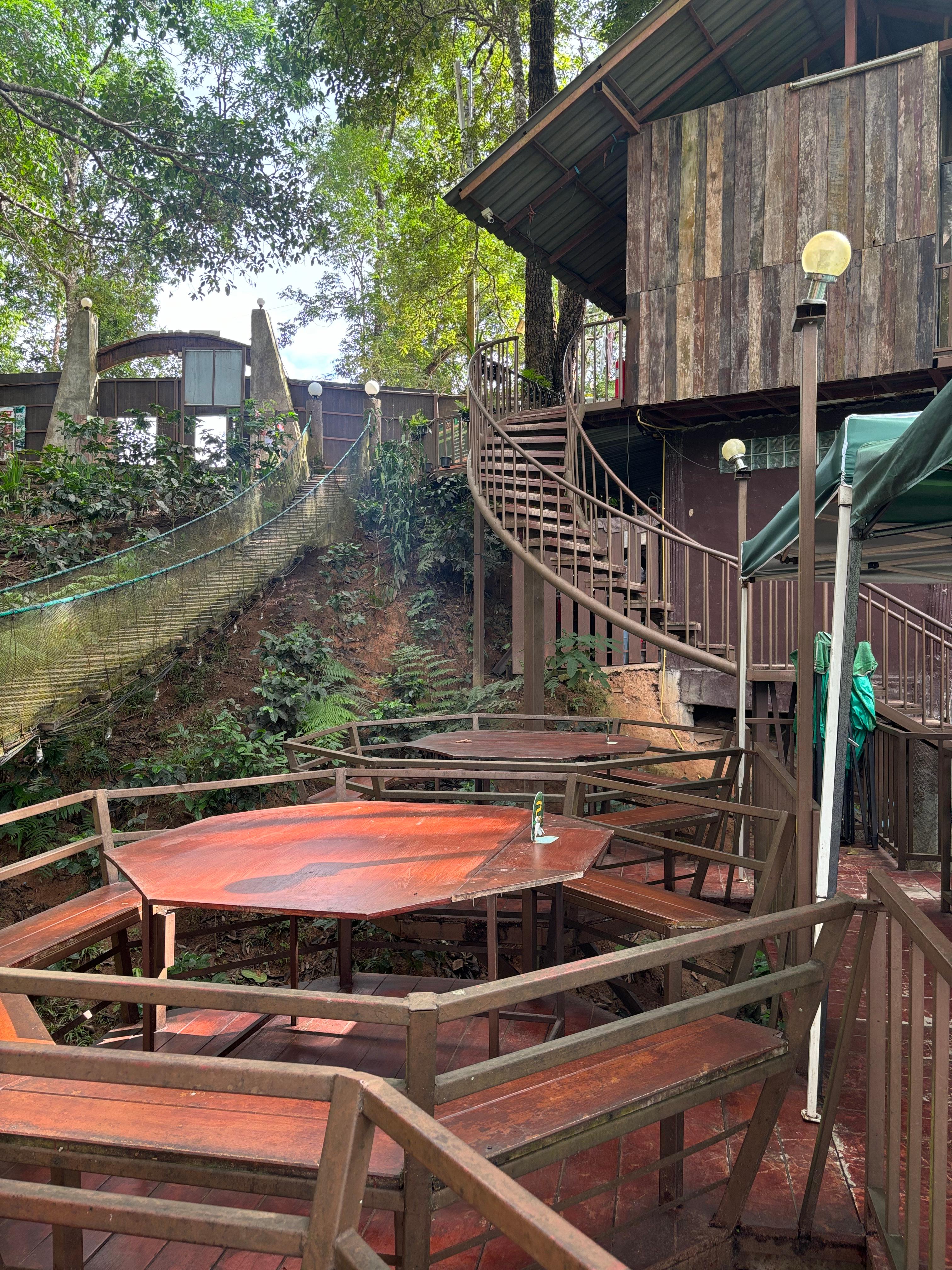 아주 큰 나무에 카페가 만들어져 있다. 그리고 카페로 가기 위해서는 흔들다리를 건너야 한다. 하지만 옆에 흔들다리를 건너지 않고 갈 수 있는 계단도 있었다. 그리고 흔들다리 앞에는 두명씩만 건너라고 적혀 있었다. 두명 이상 지나가면 무너진다는 건가? 뭔가 걱정이 되는 느낌ㅋㅋ 아이는 신기해하며 흔들다리로 건넜고, 나는 불안해하며 건넜다.