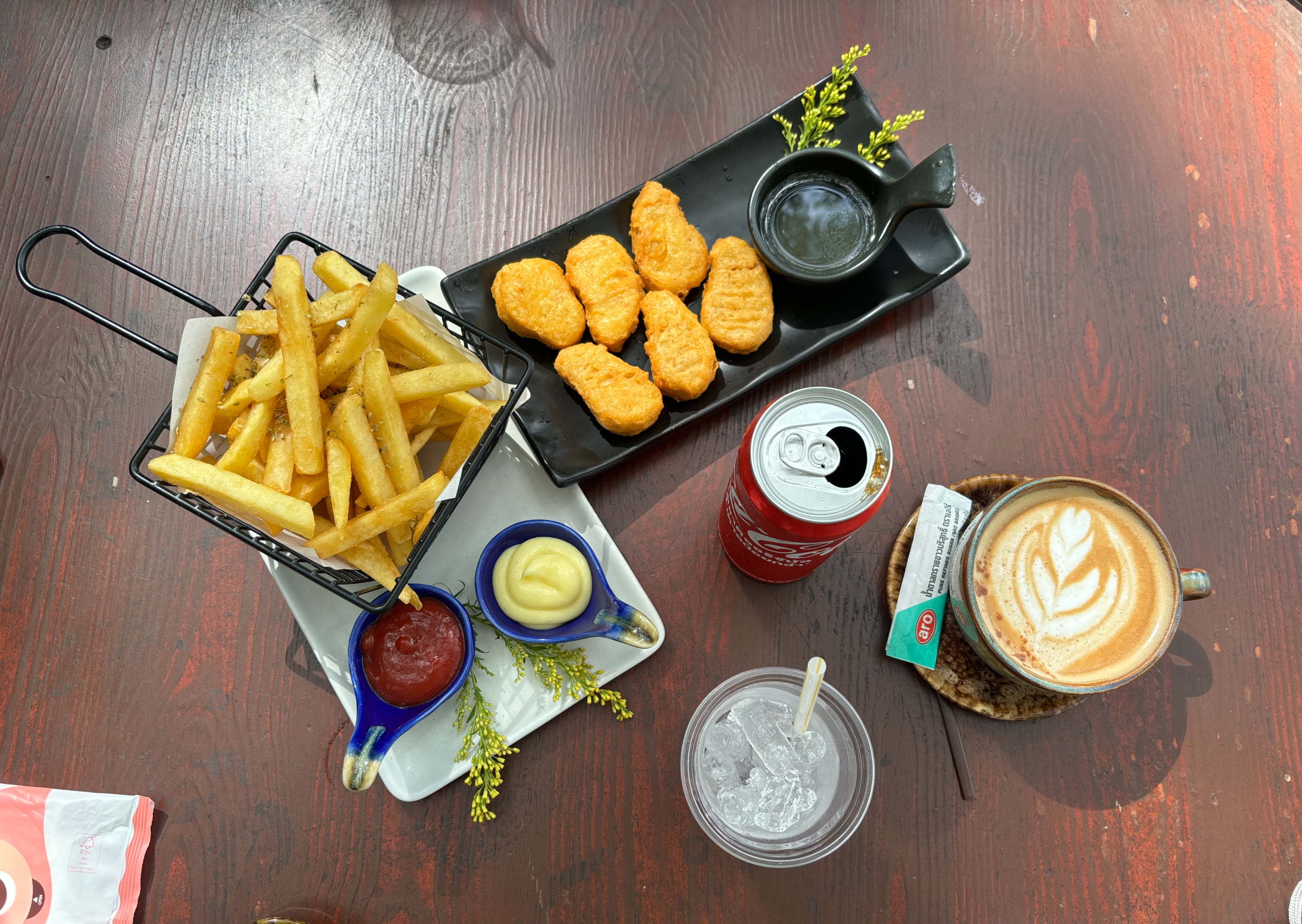 음식은 조금 비싼편이다. 우리는 간단히 치킨너겟, 감자튀김 콜라, 카푸치노를 시켰다.
