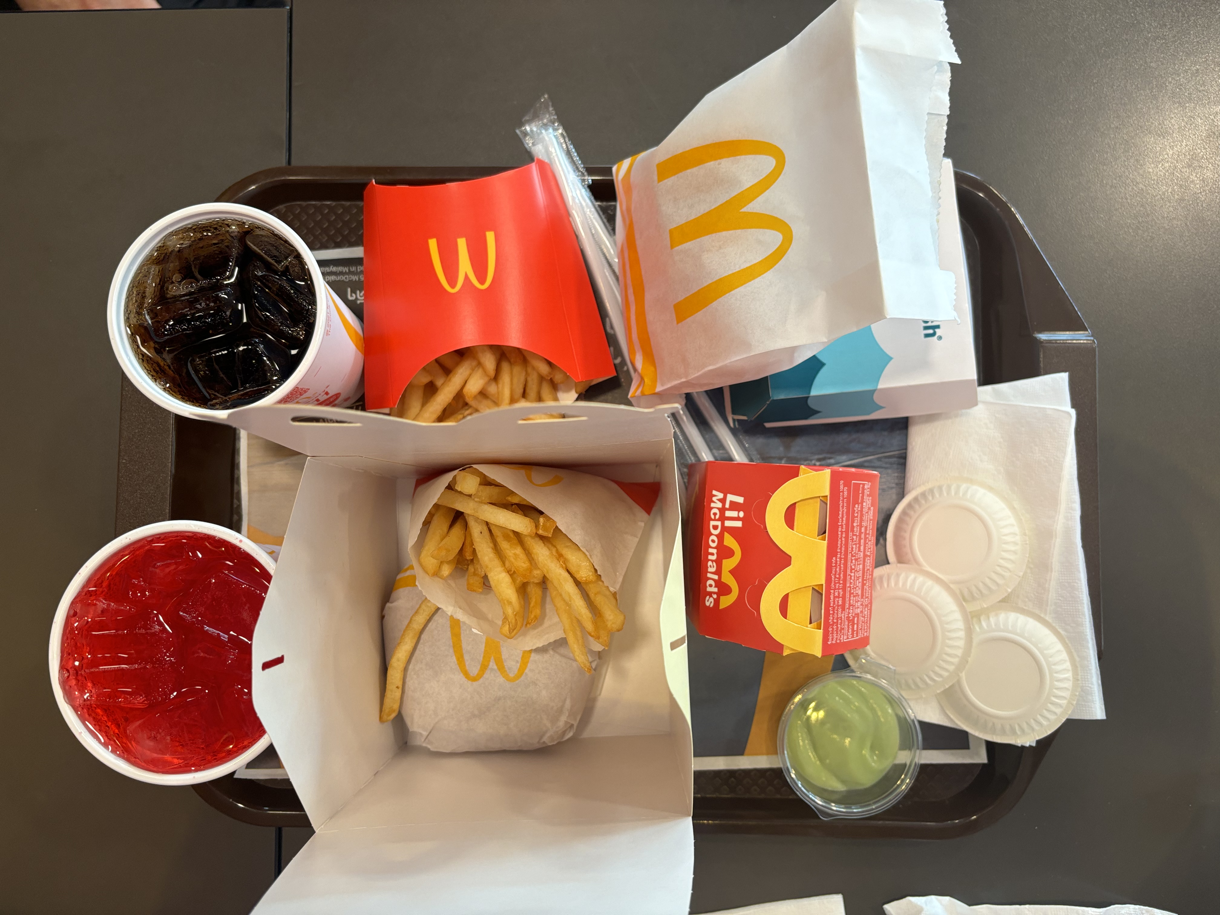 가는길에 맥도날드가 있어서 방문. 아이의 해피밀과 햄버거 셋트 마통코?라는것을 주문했다. 그리고 주문하고 번호표를 자리에 두고 있으면 자리로 가져다 주는 시스템이다. 신기한 시스템.. 찾으러 가도 되고, 가져다 달라고 해도 되고..