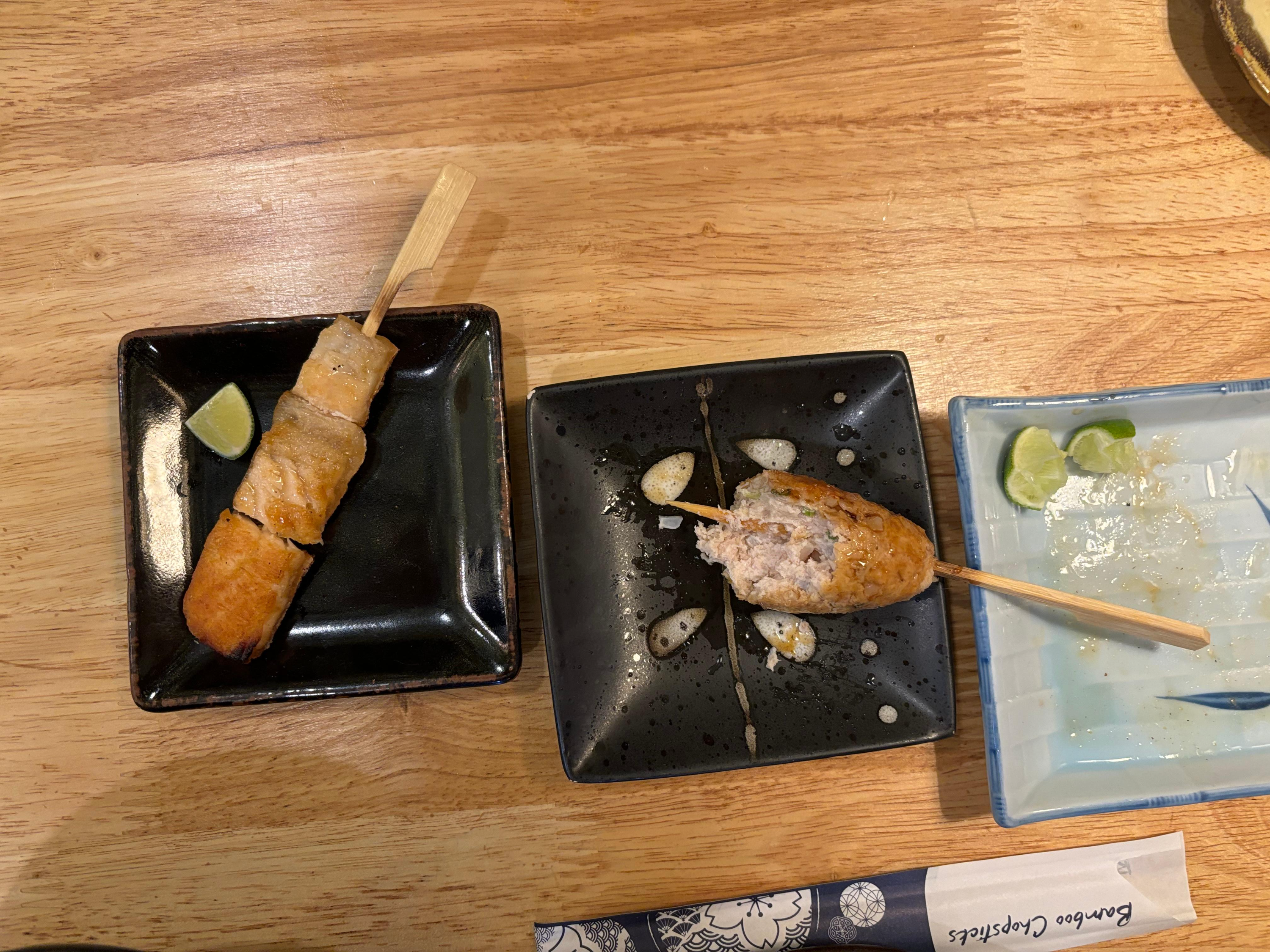 네기마와 모모는 맛있어서 하나씩 더 시켜 먹었다. 살몬은 살짝 비리고 츠쿠네는 그냥 그랬다. 모모와 네기마가 제일 맛있는 듯 하다.