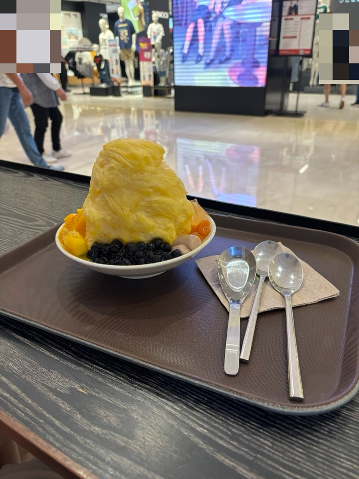 같이 나온 망고도 맛이 있고, 같이 나온 펄과 떡?같은 것도 쫄깃해서 맛이 있었다. 빙수를 좋아하는 아이는 맛있게 먹었다.