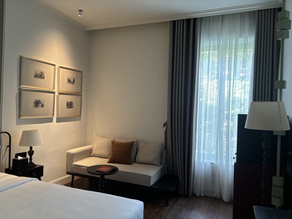 다낭 여행 중 4박 동안 머물렀던 시그니처 바이 M 빌리지 다낭 헤리티지(Signature by M Village Danang Heritage) 호텔이다. 디럭스룸(킹베드) 타입으로 28㎡ 크기의 거리뷰 방이었다.