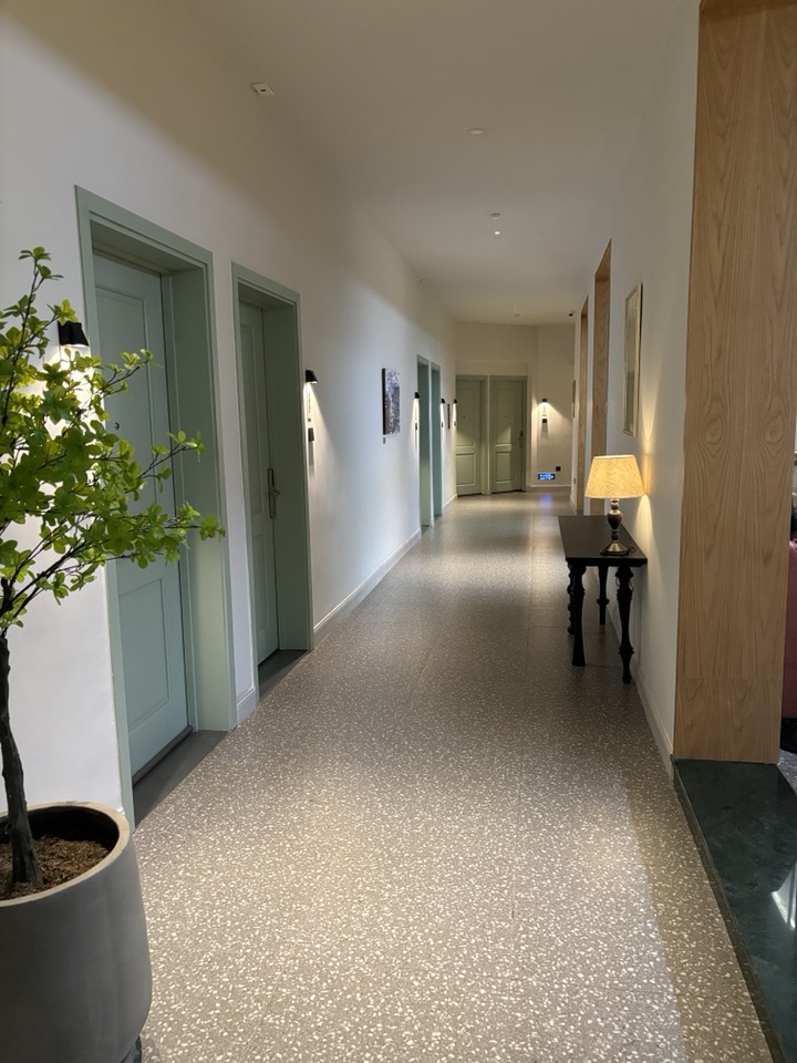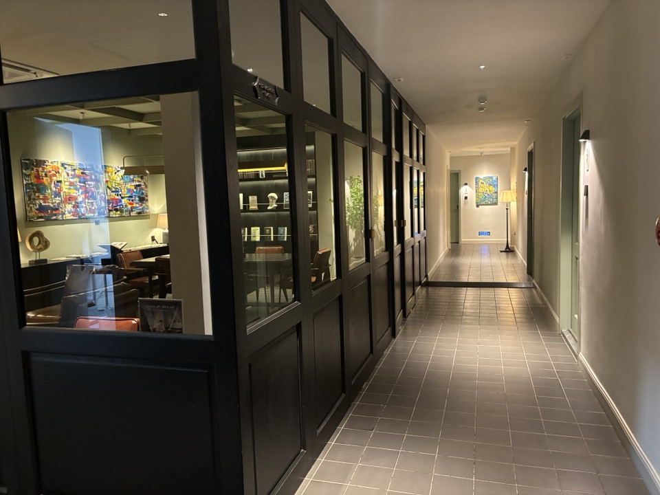 한층에 있는 객실이 꽤나 많았다. 1층에는 로비와 식당과 코웍룸이 있고, 주로 2층에 객실이 있는것 같았다. 가운데 공용공간을 둘러싸며 양쪽으로 방들이 쫙 있다.